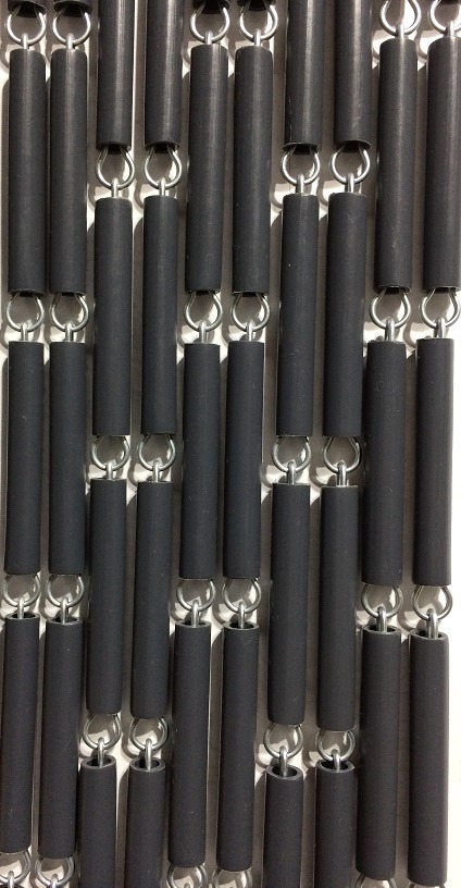 Vliegengordijn met antraciete hulsjes in een recht of versprongen motief.